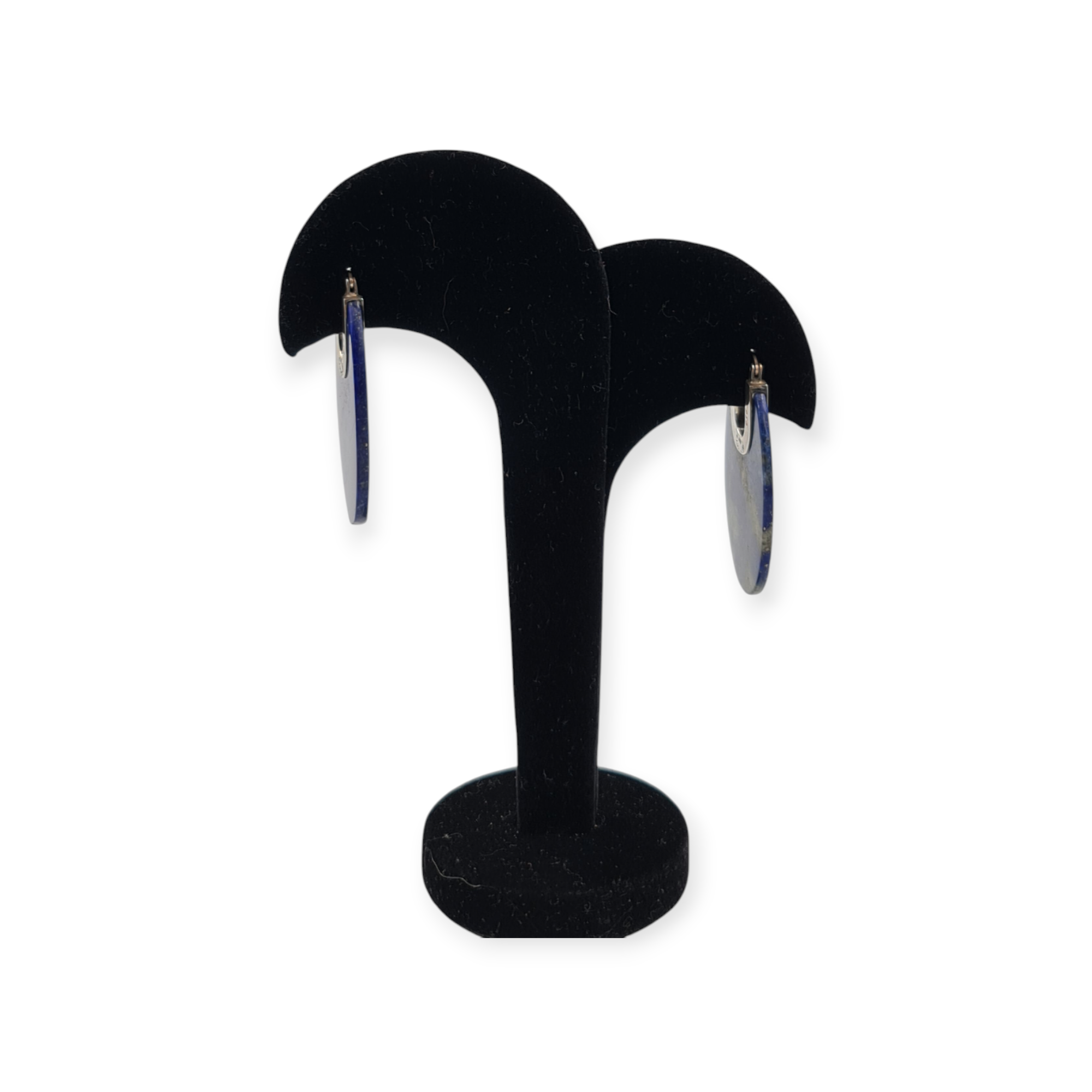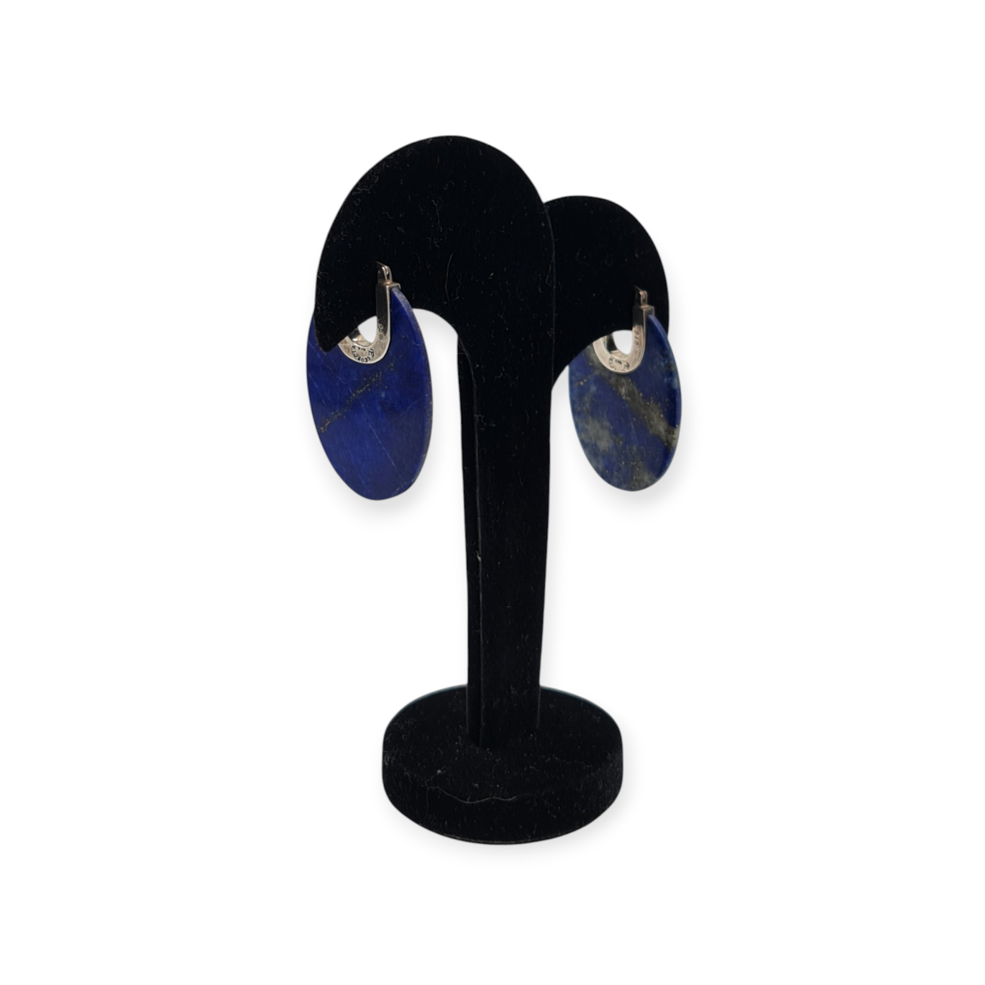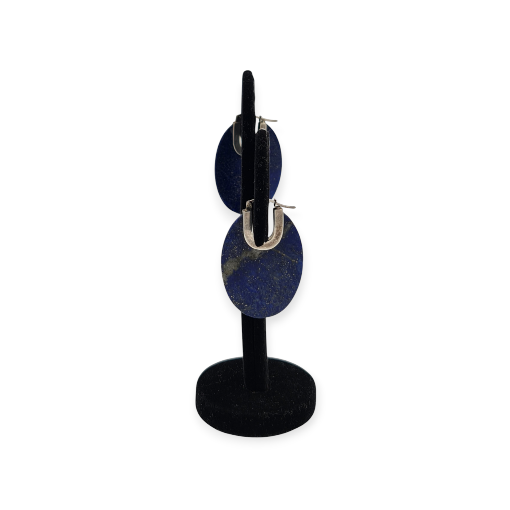 Esta pieza de joyería artesanal está elaborada con lapislázuli natural, una piedra apreciada desde la antigüedad por diversas culturas por su profundo color azul y su simbolismo espiritual.