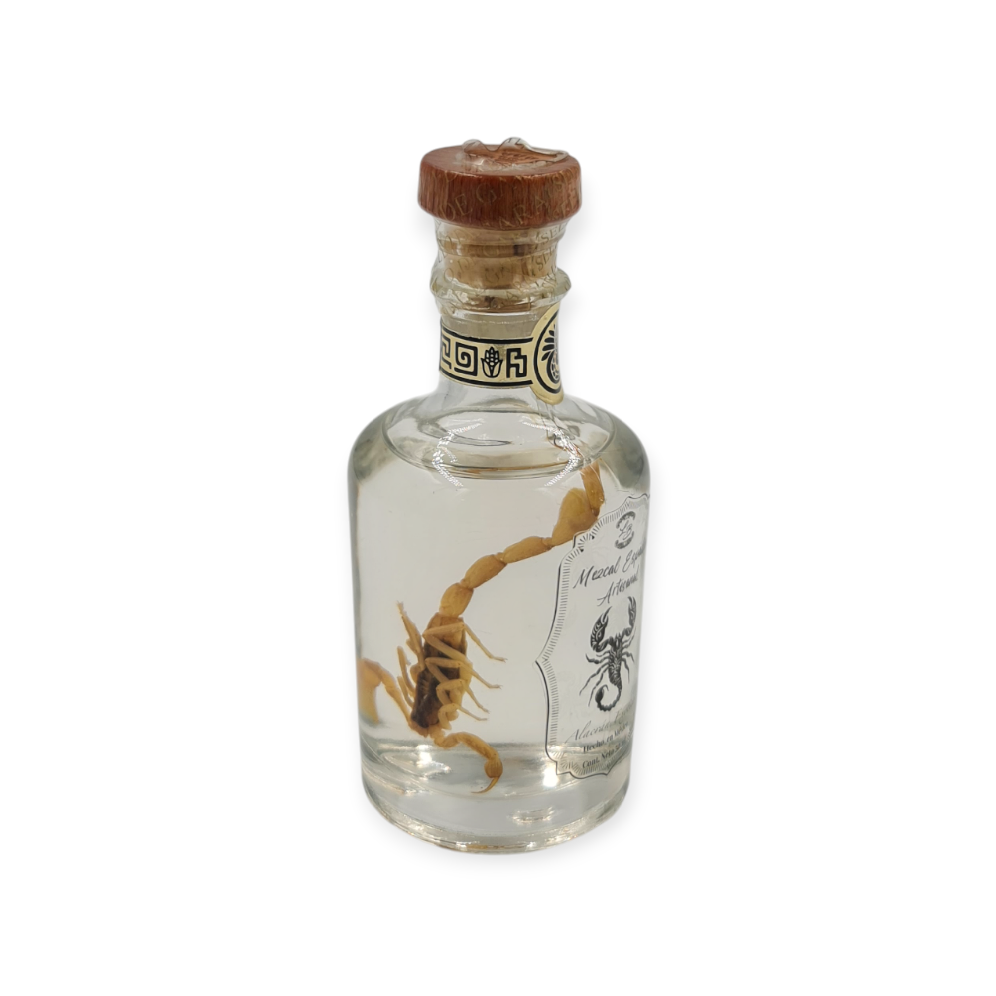 Este mezcal exótico de alacrán en presentación mini está elaborado a partir de agave espadín 100%, siguiendo procesos tradicionales que respetan la esencia del mezcal artesanal. A pesar de su tamaño, conserva el carácter, la identidad y el perfil distintivo de esta expresión exótica.