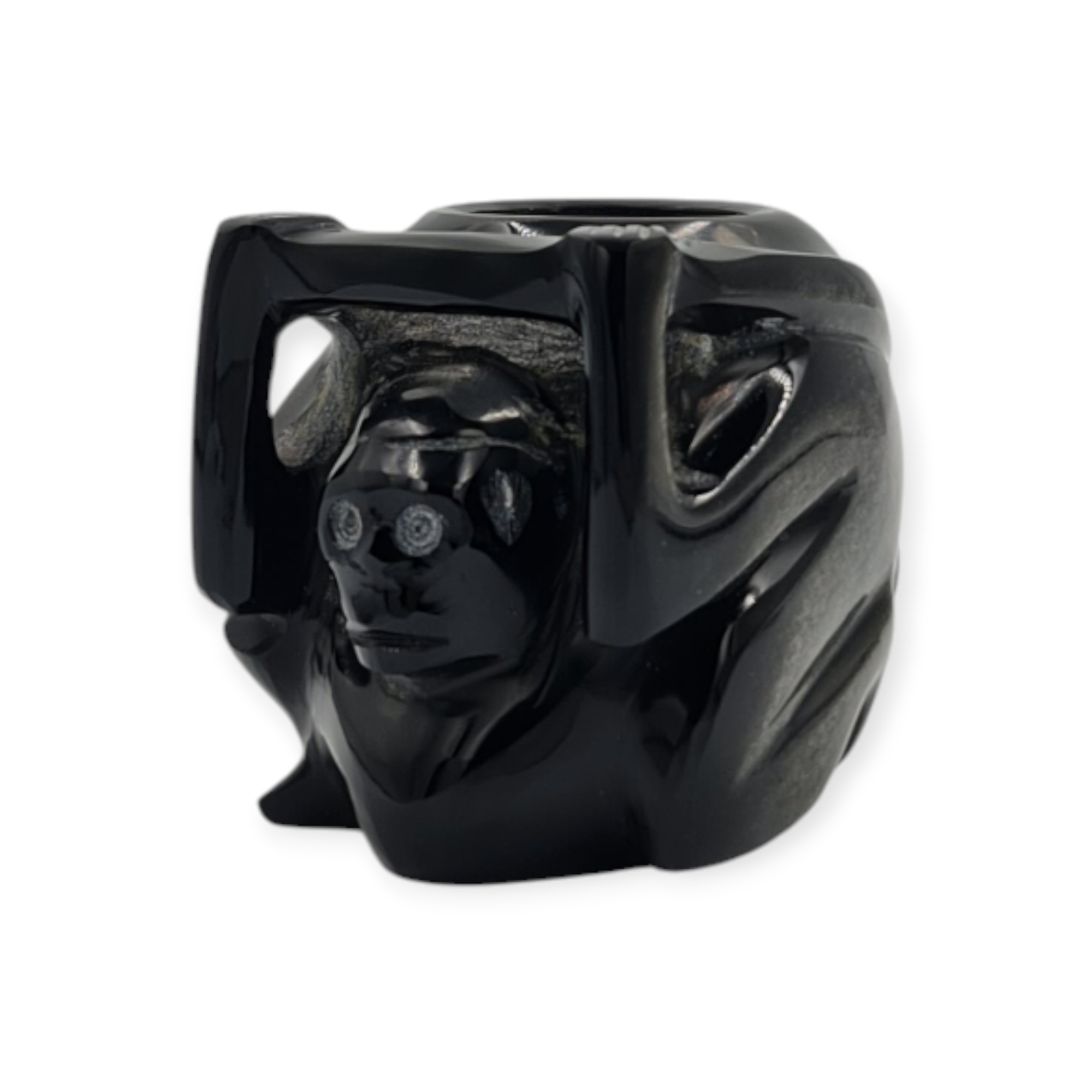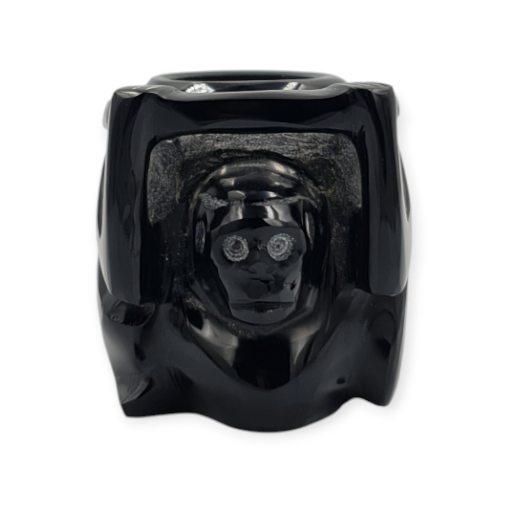 Esta pieza es una réplica de la Vasija del Mono, elaborada en obsidiana negra pulida y realizada en una escala pequeña, manteniendo las características formales y el diseño esencial de la pieza original. La figura del mono ha sido una constante en el arte mesoamericano, reflejando aspectos de la vida cotidiana y la relación del ser humano con la naturaleza.