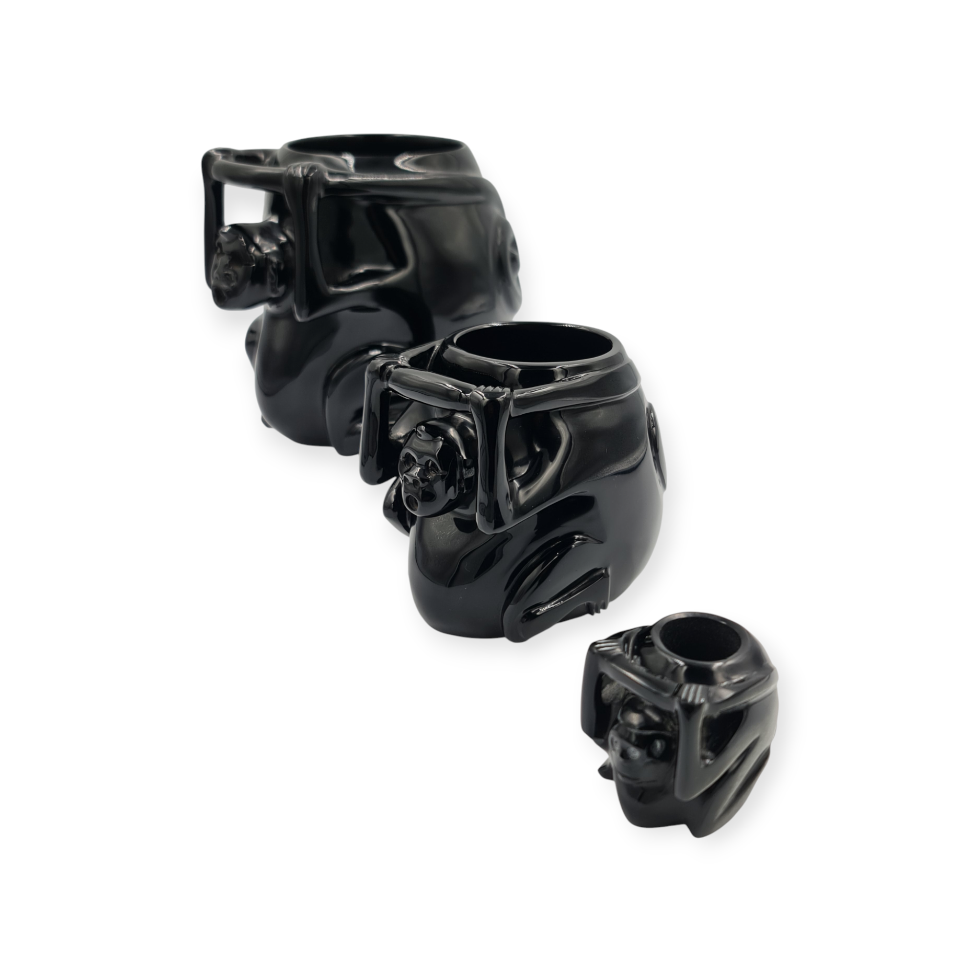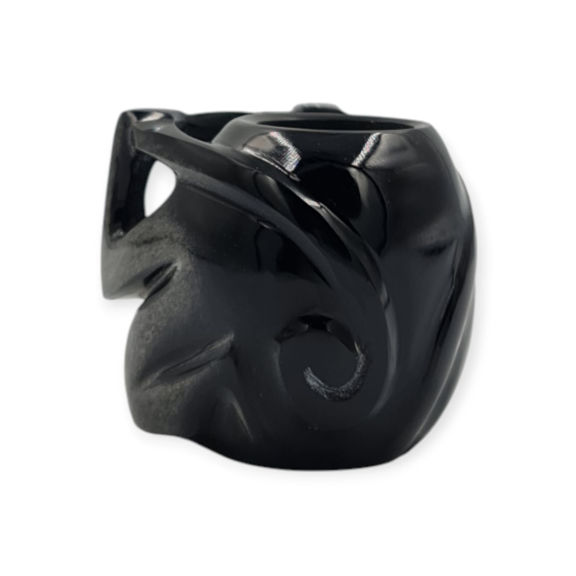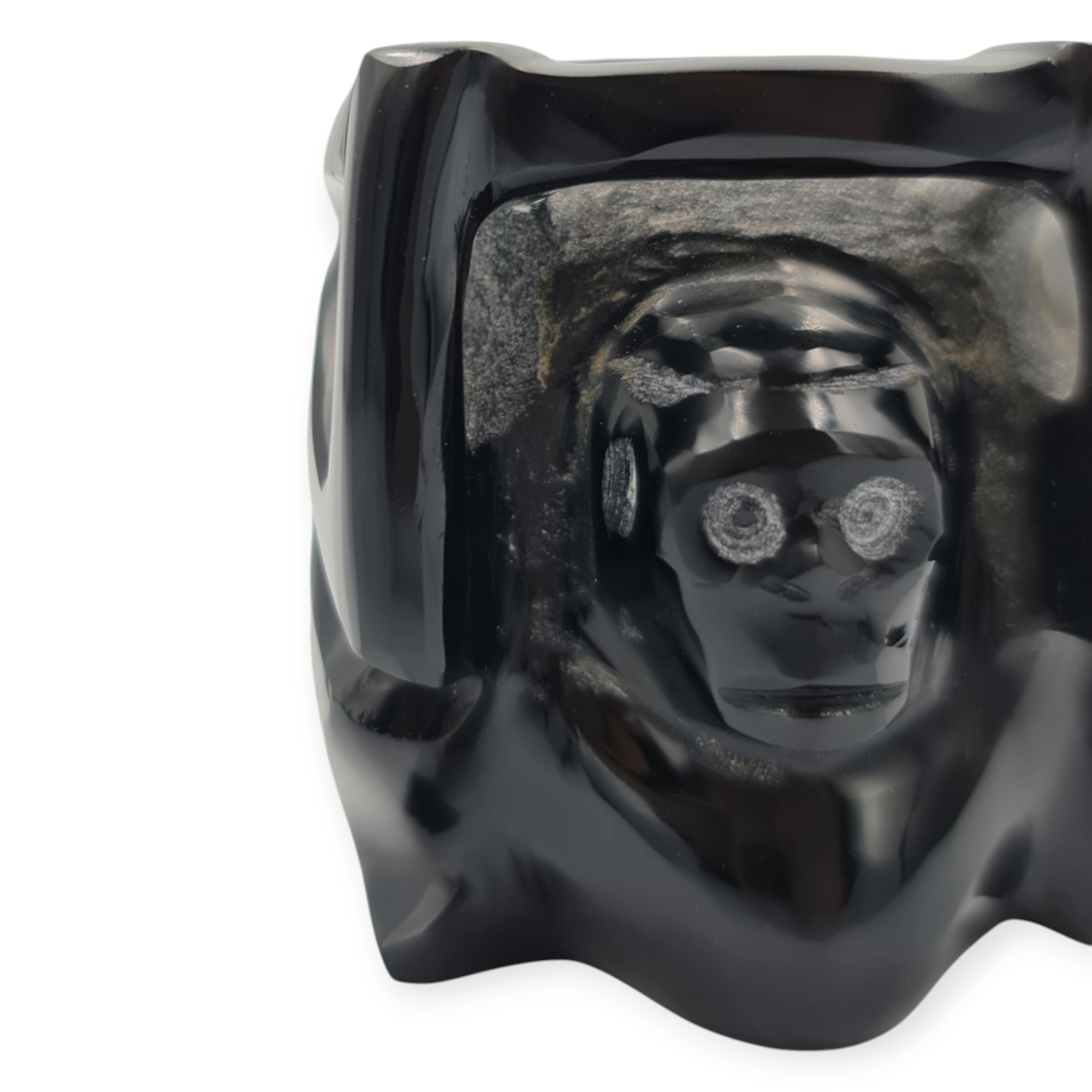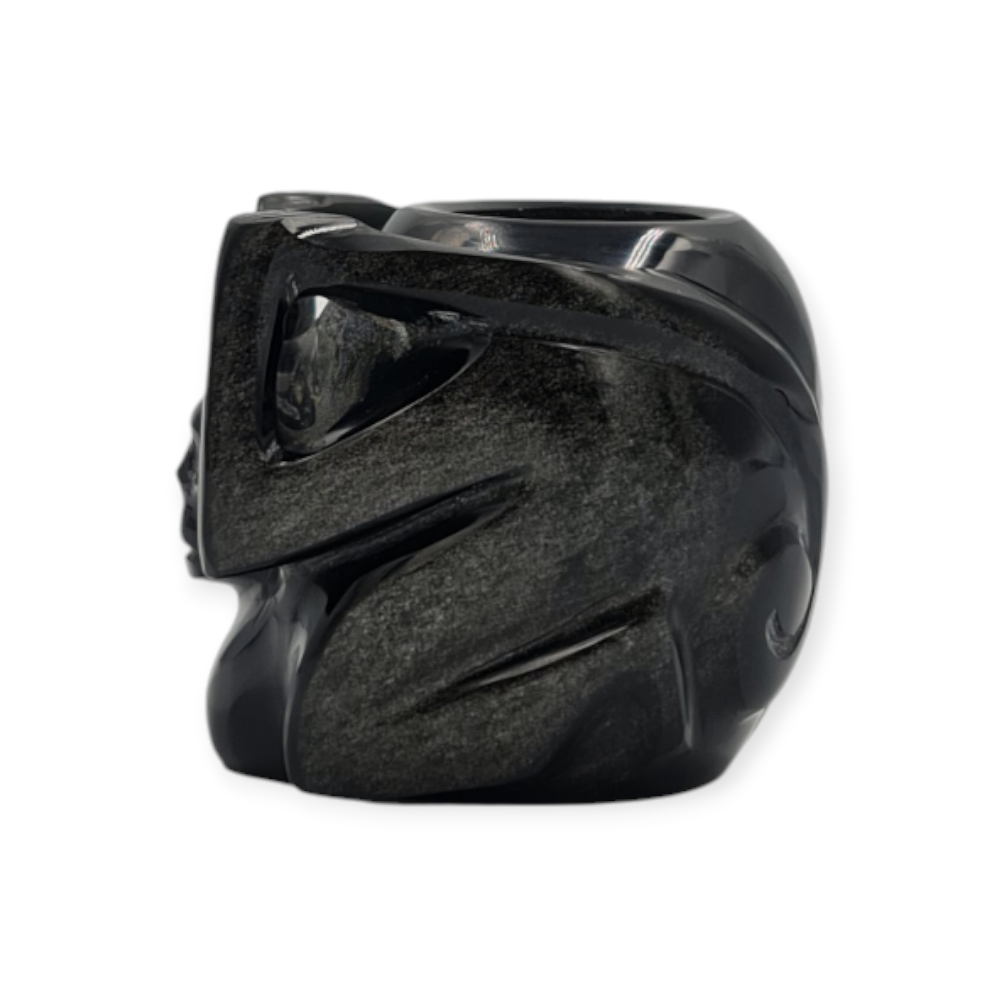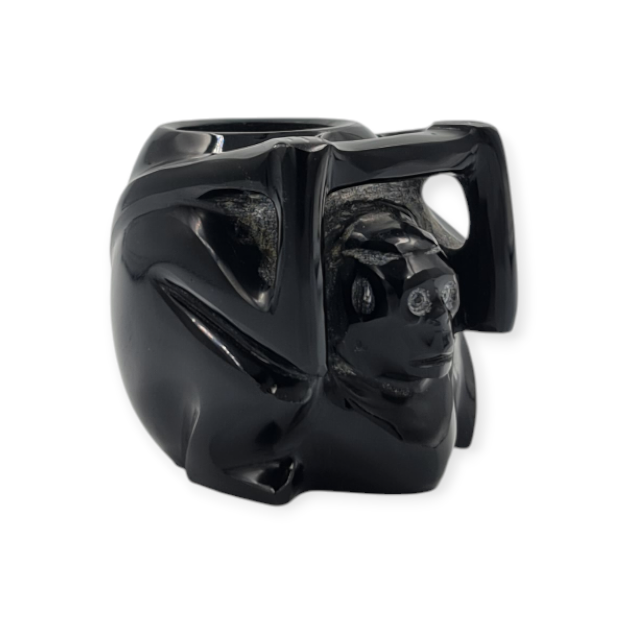La obsidiana negra pulida otorga a esta réplica un acabado elegante y sobrio, permitiendo apreciar la calidad del material y el trabajo artesanal incluso en un formato reducido.